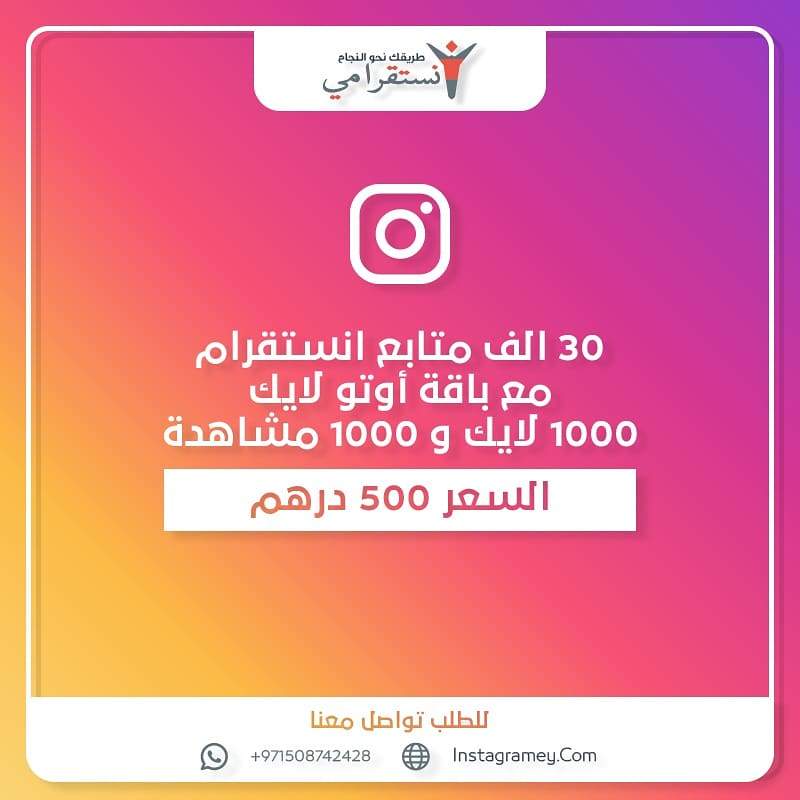 - عرض الشهر , متابعين انستقرام ٣٠ الف متابع مع خدمه الاوتو لايك 1000 لايك و 1000 مشاهده يتم ارسالها اتوماتيكيا لحسابك لمده شهر